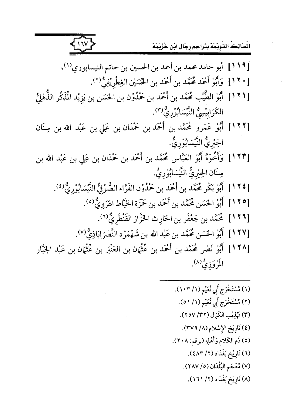 (٨) تَارِيخ بَغْدَاد (٢/ ١٦١).