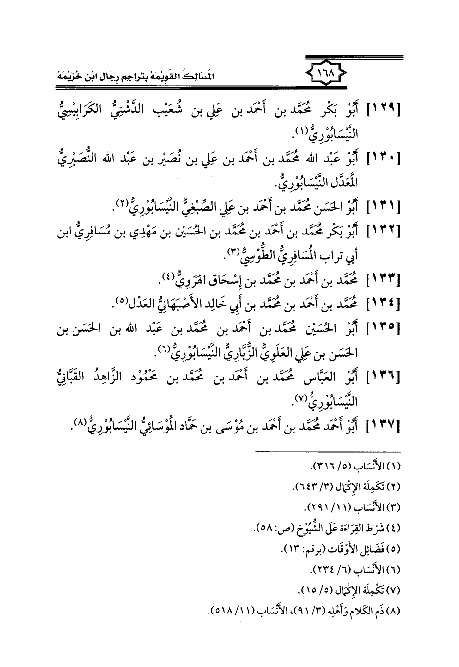كتاب المسالك القويمة بتراجم رجال ابن خزيمة في الصحيح، والتوحيد، والفوائد (اسم الجزء: 1)