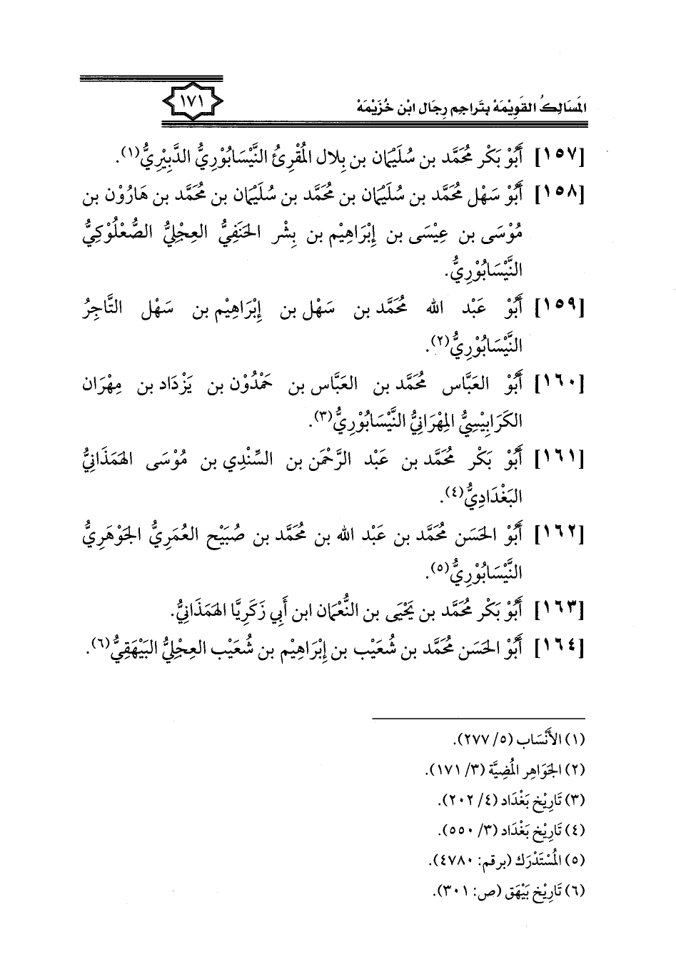 كتاب المسالك القويمة بتراجم رجال ابن خزيمة في الصحيح، والتوحيد، والفوائد (اسم الجزء: 1)