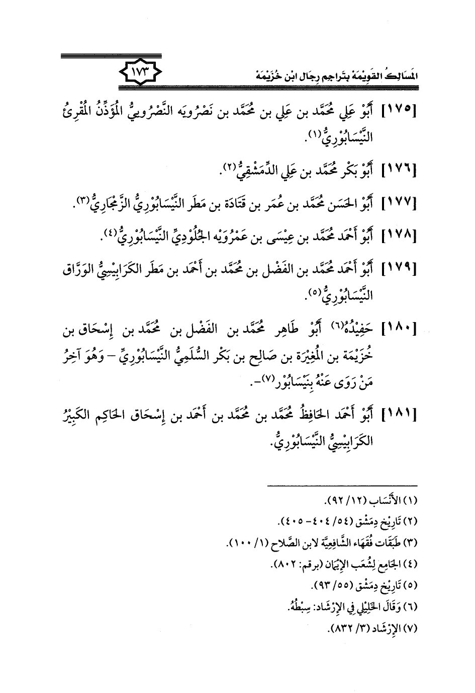[١٨٠] حَفِيْدُهُ (٦) أَبُو طَاهِر مُحَمَّد بن الفَضْل بن مُحَمَّد بن إِسْحَاق بن خُزَيْمَة بن المُغِيرَة بن صَالِح بن بَكْر السُّلَمِيُّ النَّيْسَابُوْرِيِّ - وَهُوَ آخِرُ مَنْ رَوَى عَنْهُ بِنَيْسَابُوْر (٧) -.