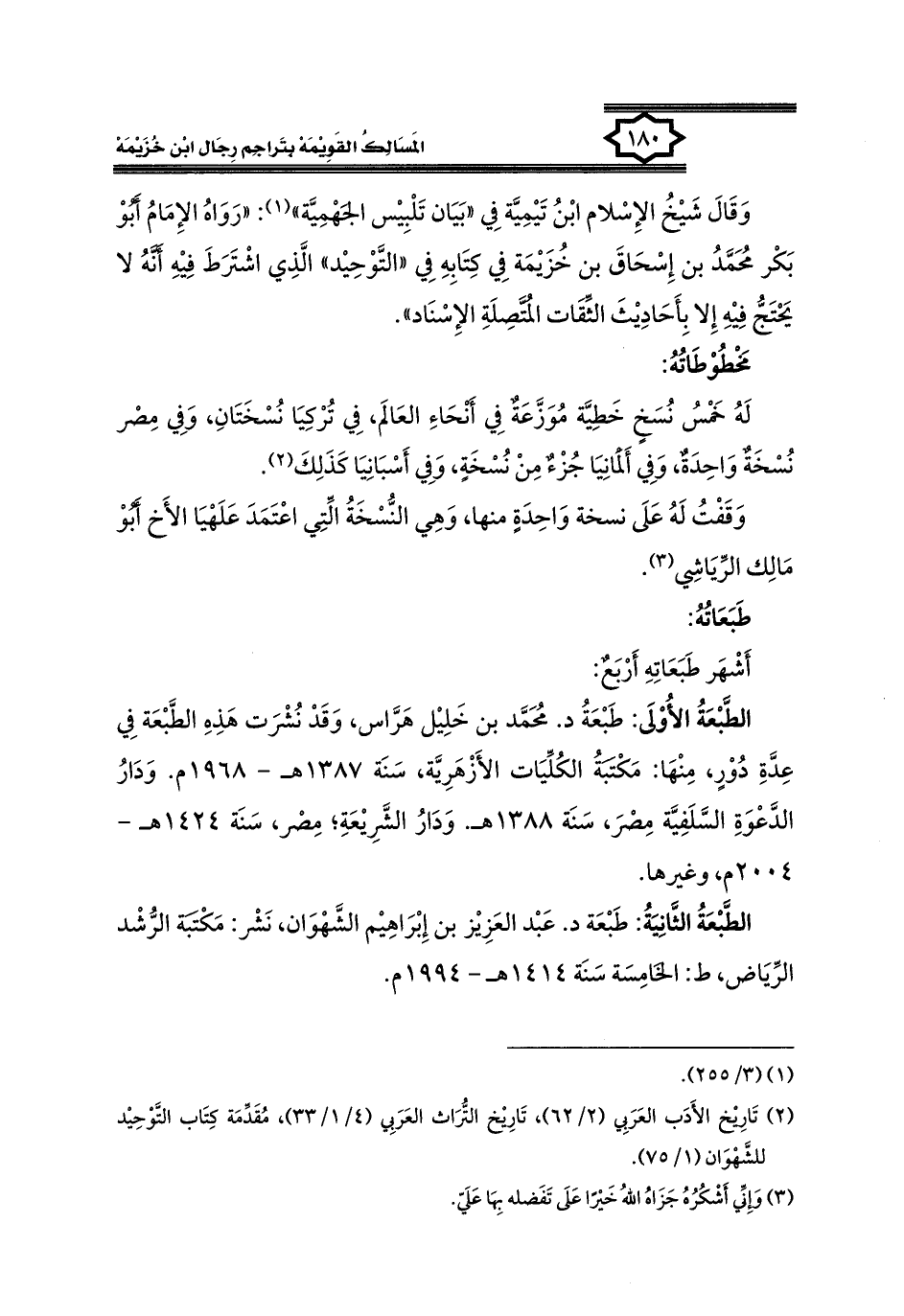 كتاب المسالك القويمة بتراجم رجال ابن خزيمة في الصحيح، والتوحيد، والفوائد (اسم الجزء: 1)