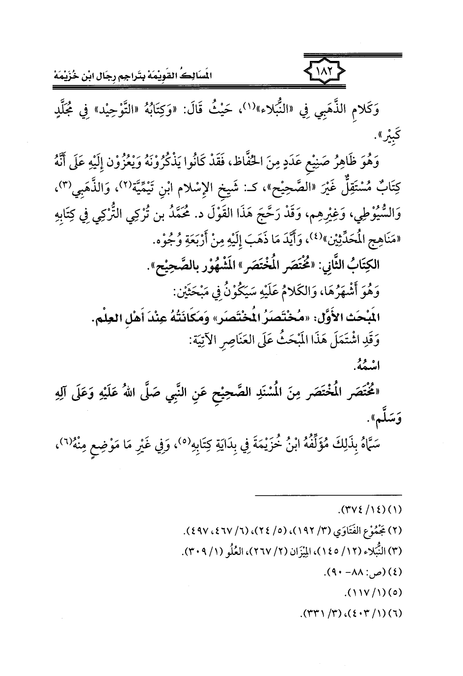 وَكَلامِ الذَّهَبِي فِي "النُّبَلاء" (١)، حَيْثُ قَالَ: "وَكِتَابُهُ "التَّوْحِيد" فِي مُجَلَّدٍ كَبِير".