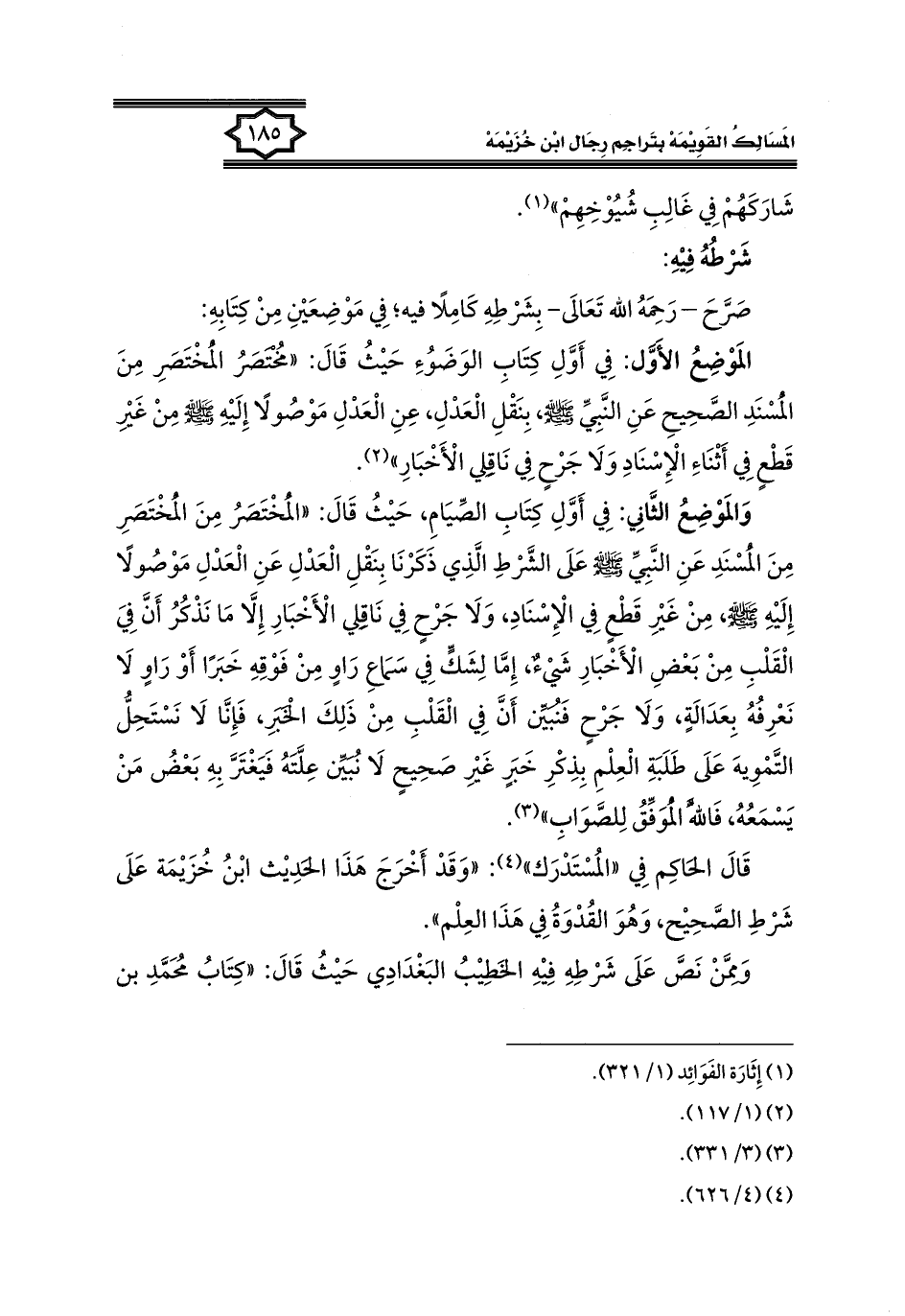 كتاب المسالك القويمة بتراجم رجال ابن خزيمة في الصحيح، والتوحيد، والفوائد (اسم الجزء: 1)