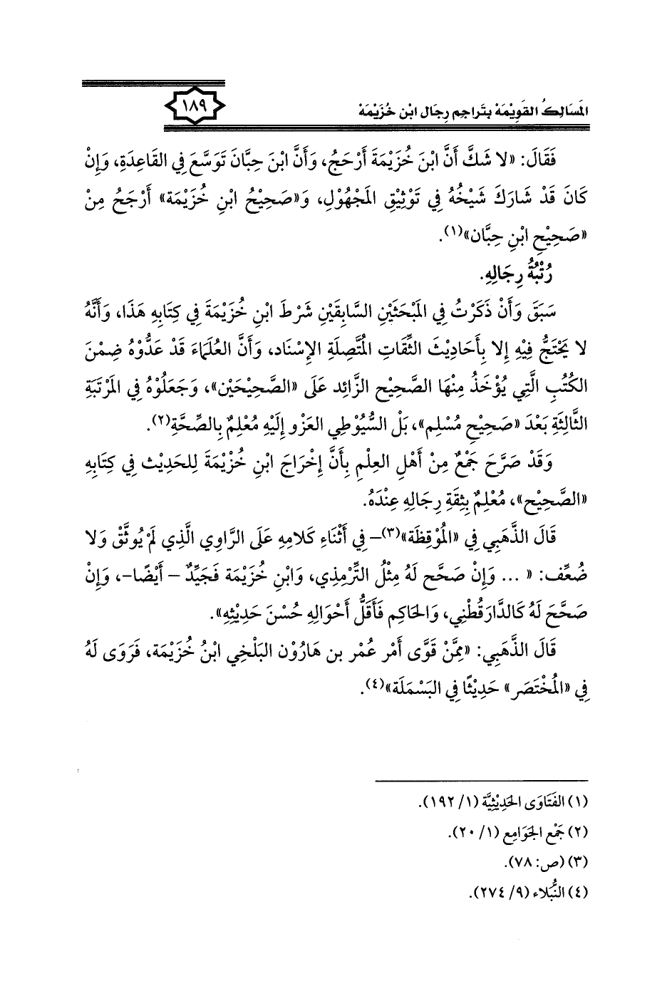 كتاب المسالك القويمة بتراجم رجال ابن خزيمة في الصحيح، والتوحيد، والفوائد (اسم الجزء: 1)