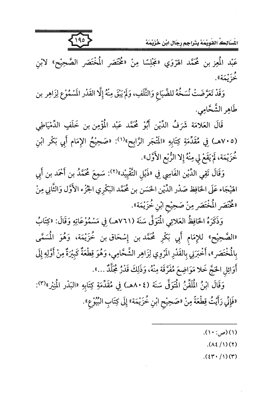 كتاب المسالك القويمة بتراجم رجال ابن خزيمة في الصحيح، والتوحيد، والفوائد (اسم الجزء: 1)