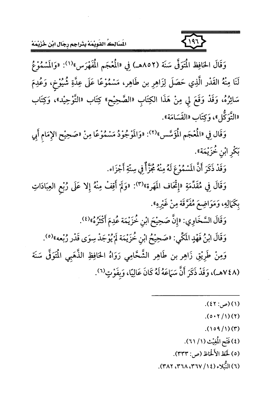 كتاب المسالك القويمة بتراجم رجال ابن خزيمة في الصحيح، والتوحيد، والفوائد (اسم الجزء: 1)