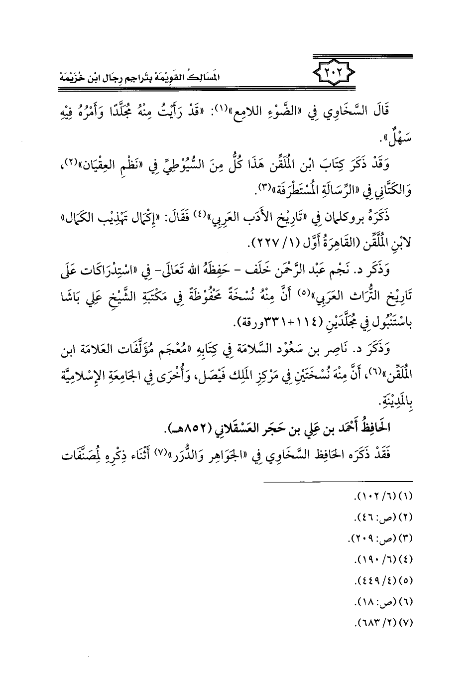 وَقَدْ ذَكَرَ كِتَابَ ابْن المُلَقِّن هَذَا كُلُّ مِنَ السُّيُوْطِيِّ فِي "نَظْمِ العِقْيَان" (٢)، وَالكَتَّانِي فِي "الرِّسَالَةِ المُسْتَطْرَفَة" (٣).