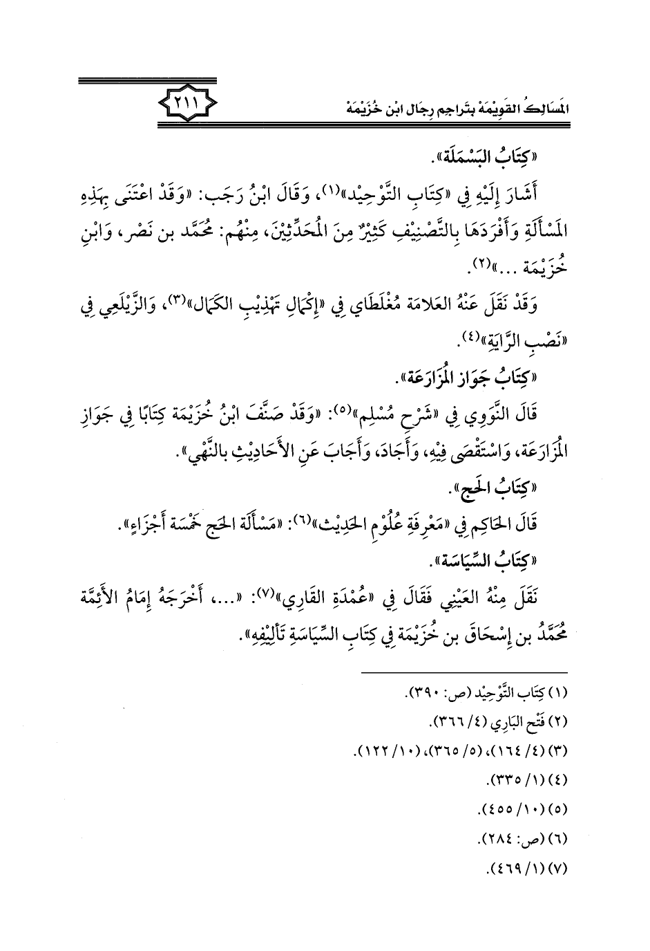 كتاب المسالك القويمة بتراجم رجال ابن خزيمة في الصحيح، والتوحيد، والفوائد (اسم الجزء: 1)