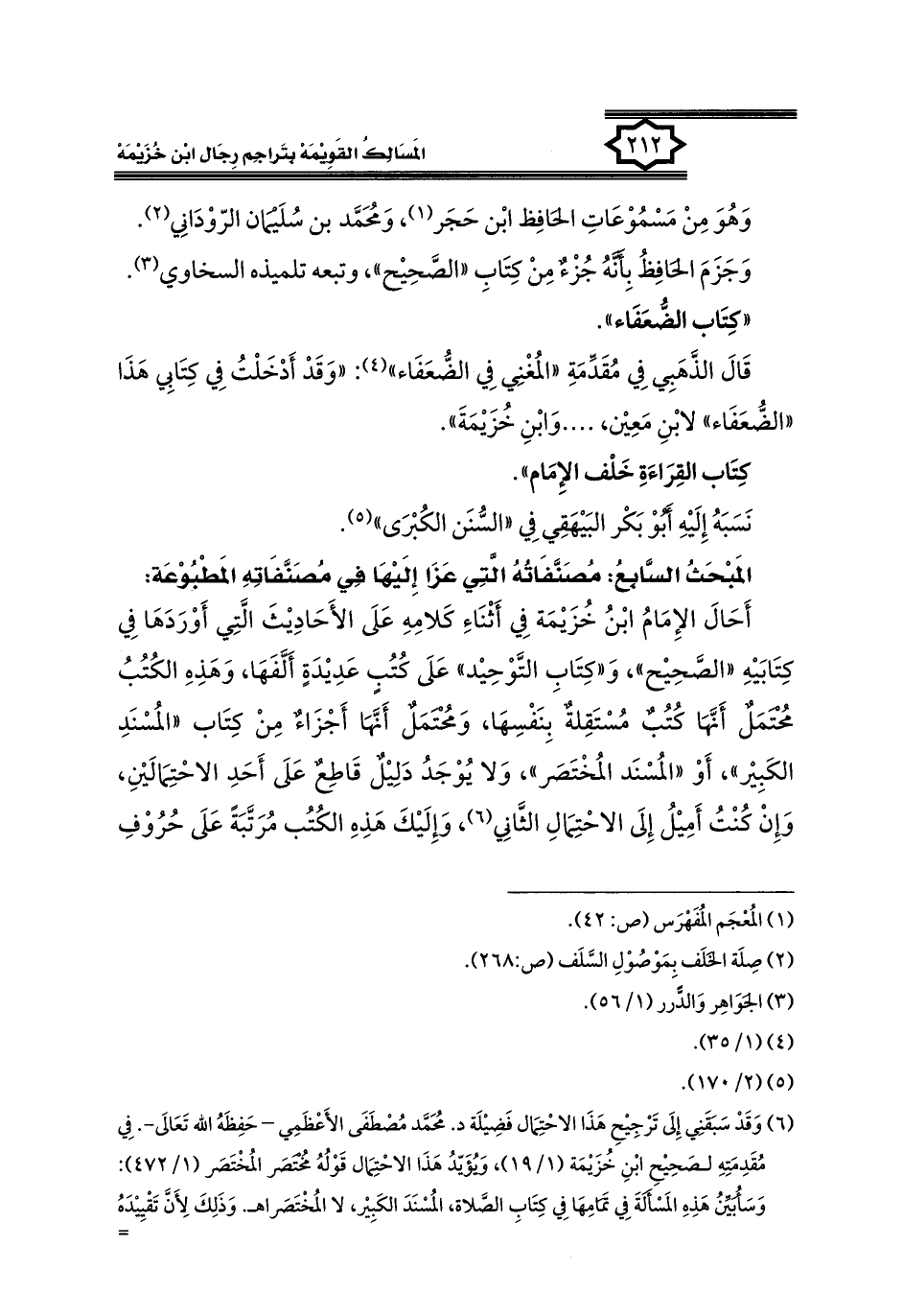 كتاب المسالك القويمة بتراجم رجال ابن خزيمة في الصحيح، والتوحيد، والفوائد (اسم الجزء: 1)