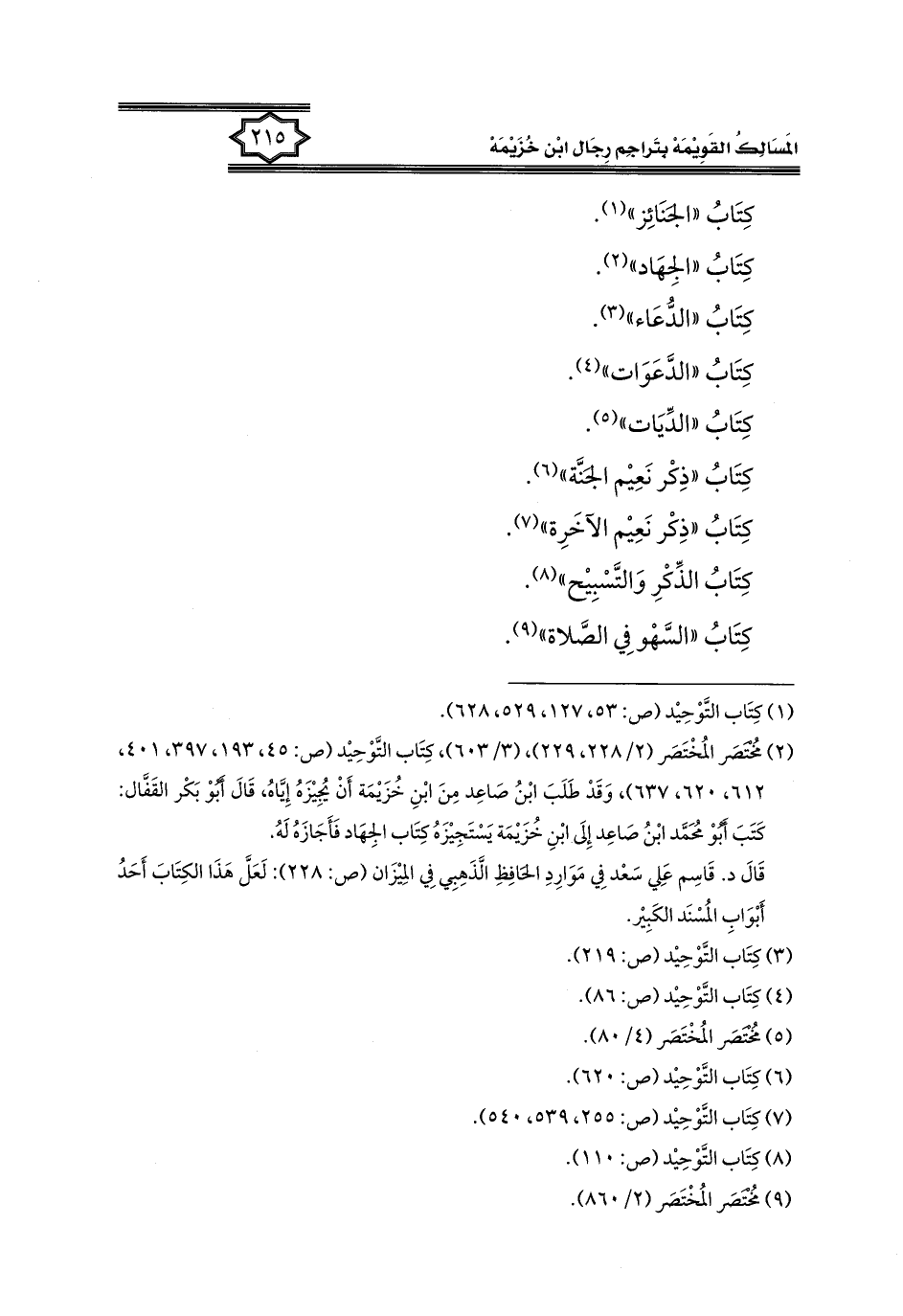 كتاب المسالك القويمة بتراجم رجال ابن خزيمة في الصحيح، والتوحيد، والفوائد (اسم الجزء: 1)