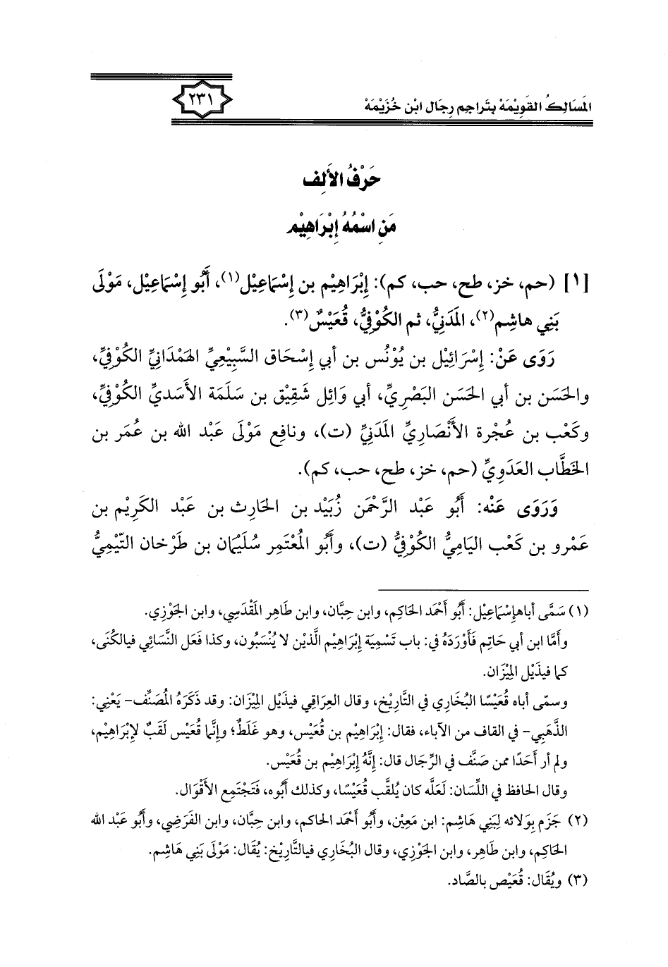 كتاب المسالك القويمة بتراجم رجال ابن خزيمة في الصحيح، والتوحيد، والفوائد (اسم الجزء: 1)