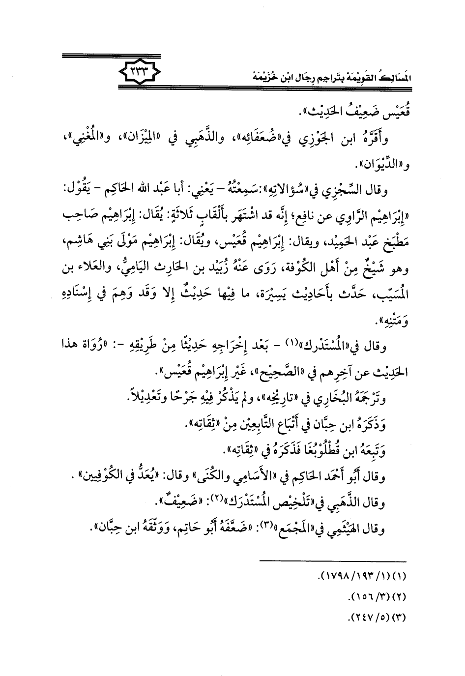 كتاب المسالك القويمة بتراجم رجال ابن خزيمة في الصحيح، والتوحيد، والفوائد (اسم الجزء: 1)