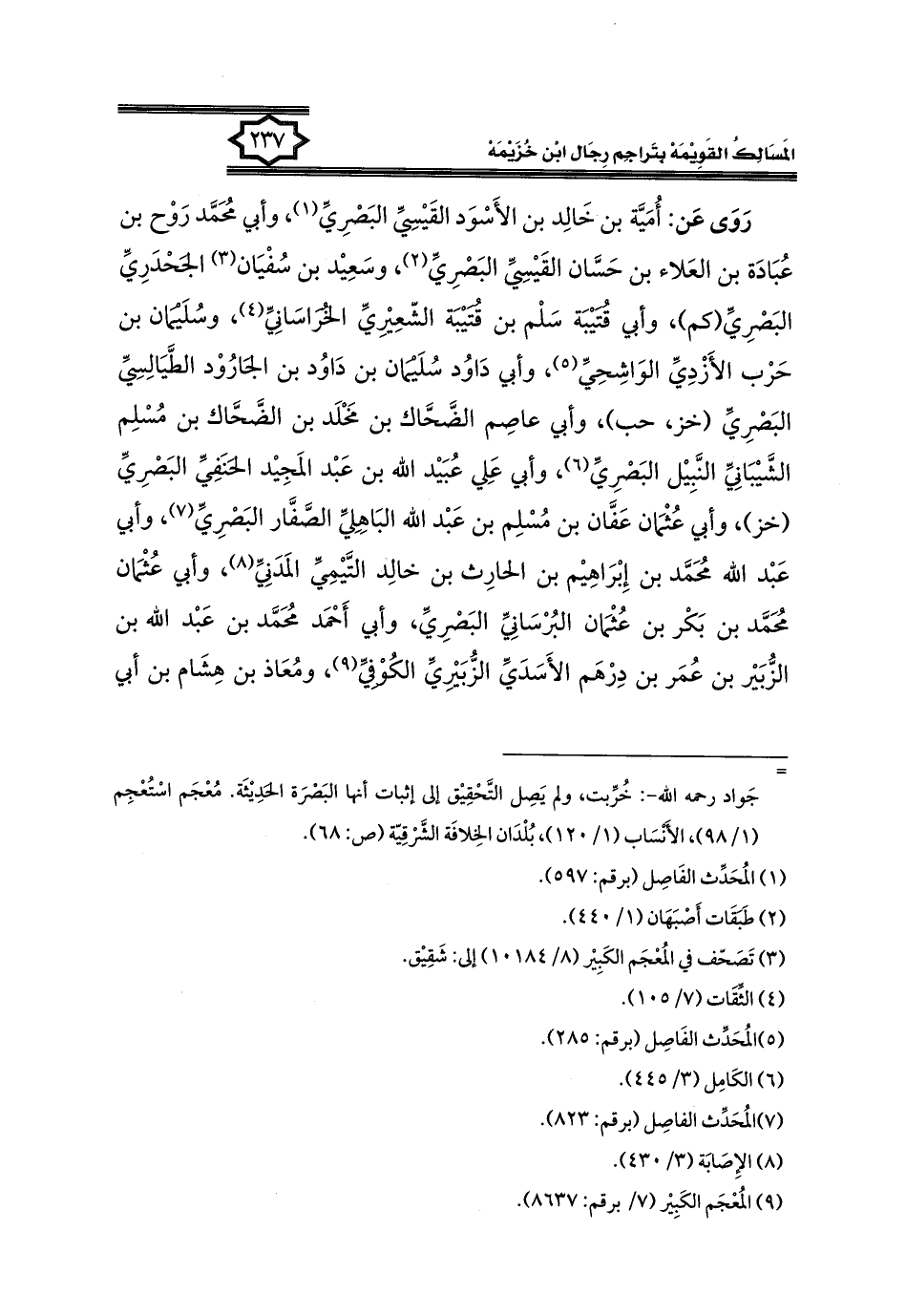 كتاب المسالك القويمة بتراجم رجال ابن خزيمة في الصحيح، والتوحيد، والفوائد (اسم الجزء: 1)