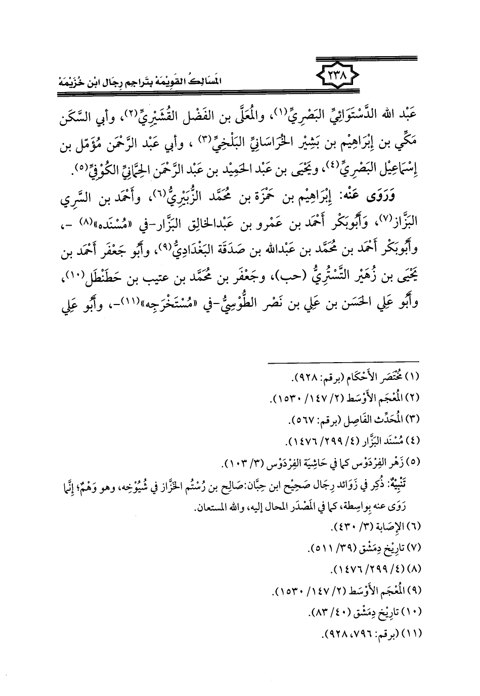 كتاب المسالك القويمة بتراجم رجال ابن خزيمة في الصحيح، والتوحيد، والفوائد (اسم الجزء: 1)