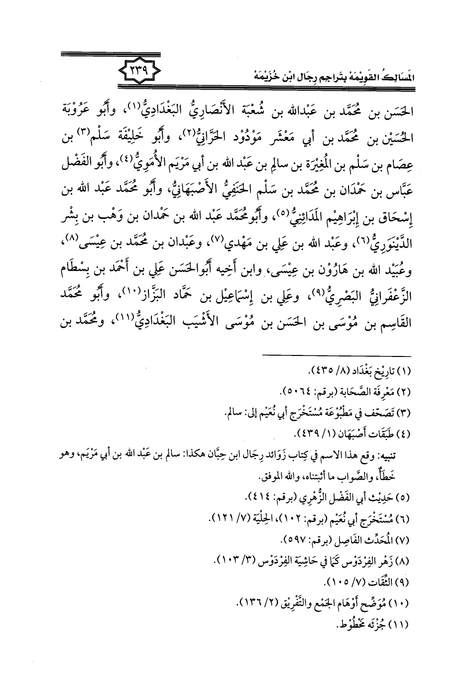 كتاب المسالك القويمة بتراجم رجال ابن خزيمة في الصحيح، والتوحيد، والفوائد (اسم الجزء: 1)