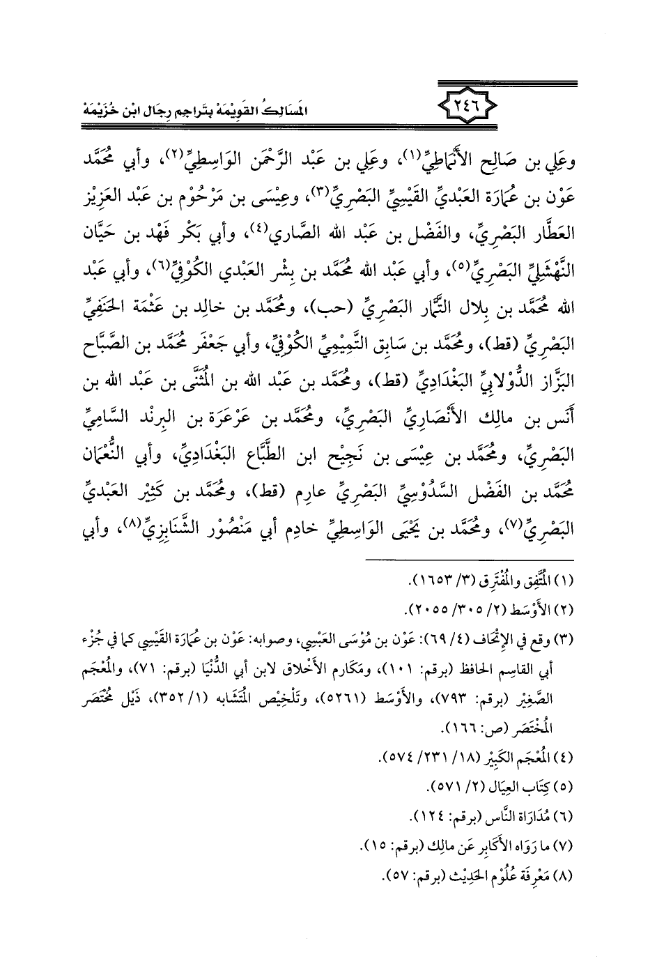 كتاب المسالك القويمة بتراجم رجال ابن خزيمة في الصحيح، والتوحيد، والفوائد (اسم الجزء: 1)