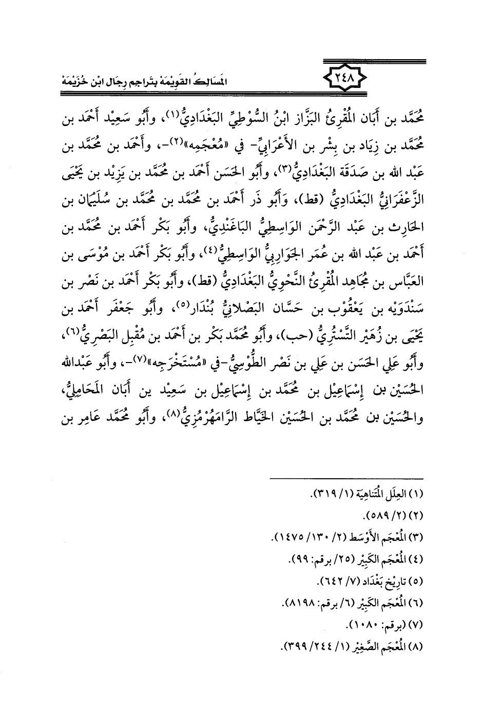 كتاب المسالك القويمة بتراجم رجال ابن خزيمة في الصحيح، والتوحيد، والفوائد (اسم الجزء: 1)