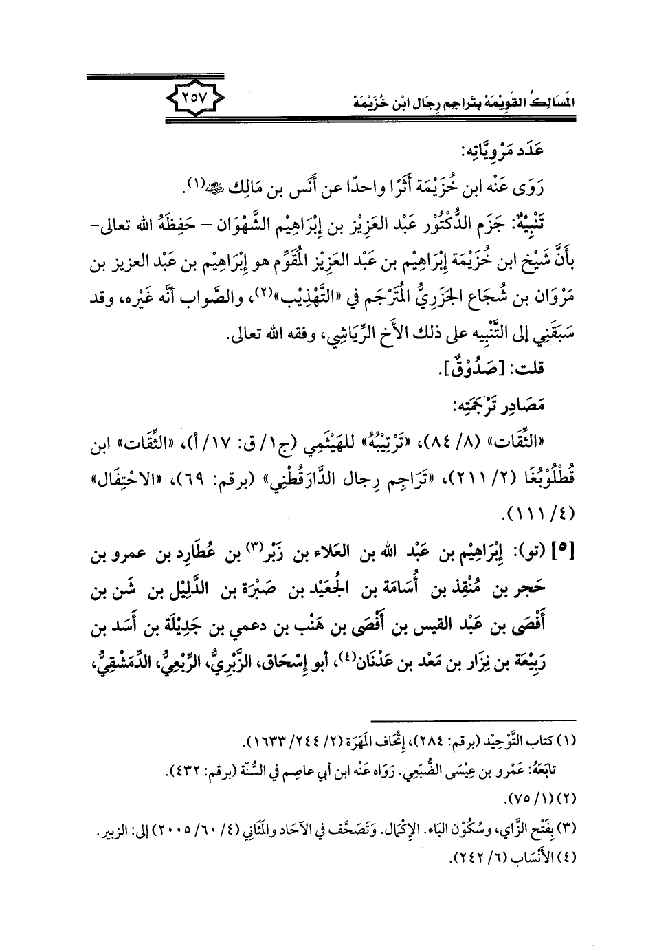 كتاب المسالك القويمة بتراجم رجال ابن خزيمة في الصحيح، والتوحيد، والفوائد (اسم الجزء: 1)