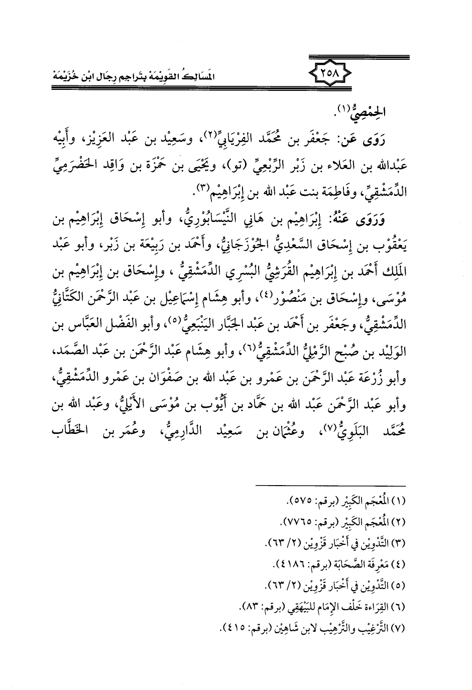كتاب المسالك القويمة بتراجم رجال ابن خزيمة في الصحيح، والتوحيد، والفوائد (اسم الجزء: 1)