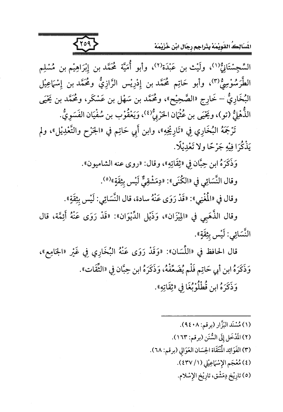 كتاب المسالك القويمة بتراجم رجال ابن خزيمة في الصحيح، والتوحيد، والفوائد (اسم الجزء: 1)