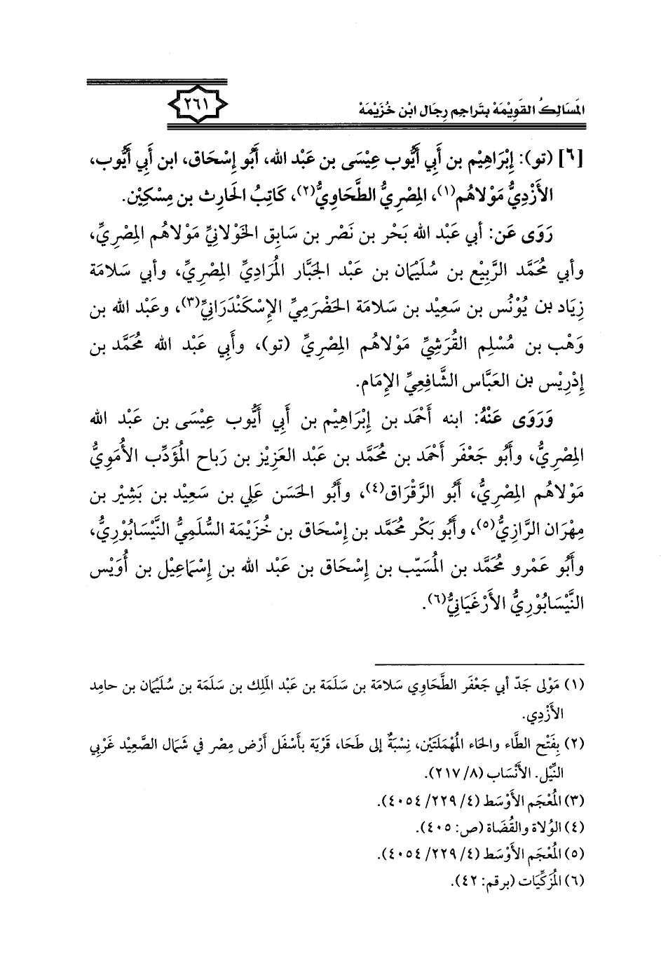 (٢) بِفَتْح الطَّاء والحاء المُهْمَلتَيْن، نِسْبَةٌ إلى طَحَا، قَرْيَة بأَسْفَل أَرْض مِصْر في شَمَال الصَّعِيْد غَرْبِي النِّيْل. الأَنْسَاب (٨/ ٢١٧).
