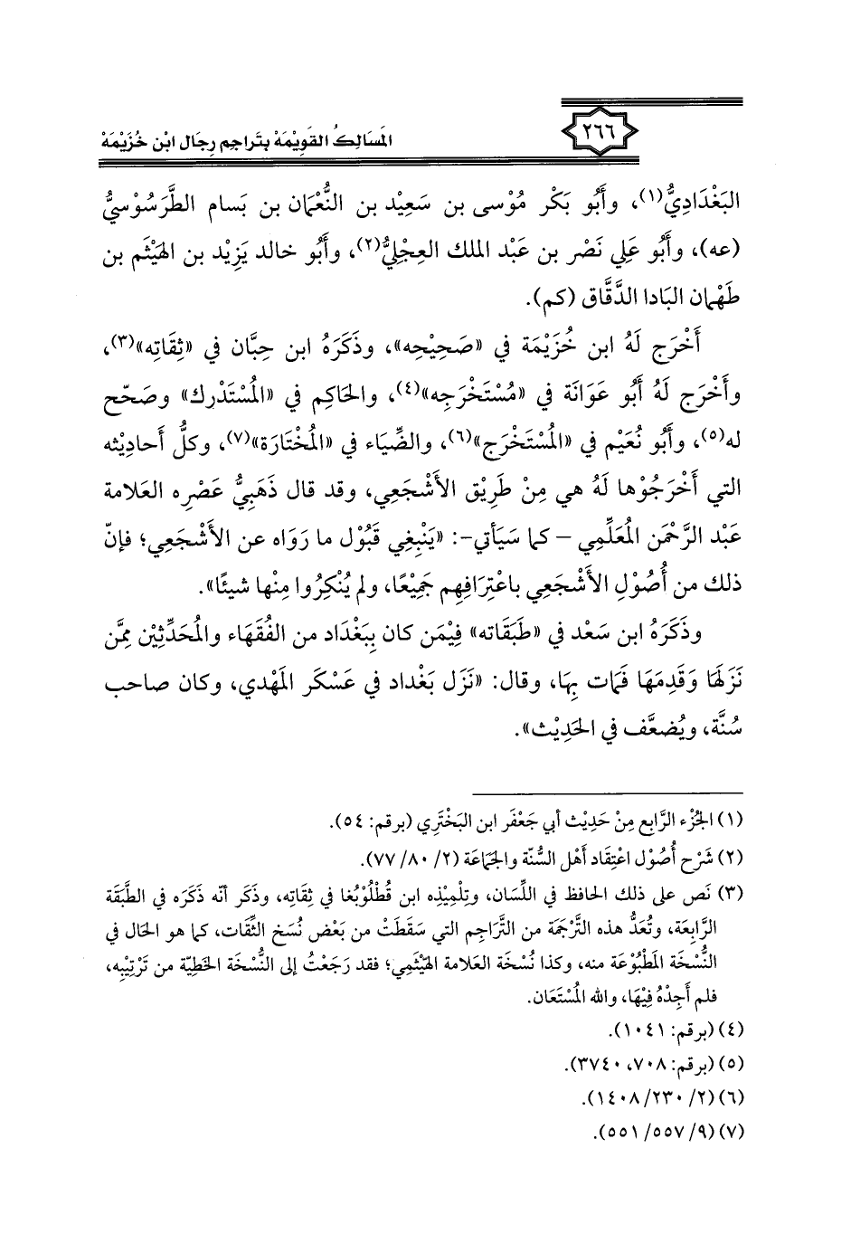 كتاب المسالك القويمة بتراجم رجال ابن خزيمة في الصحيح، والتوحيد، والفوائد (اسم الجزء: 1)