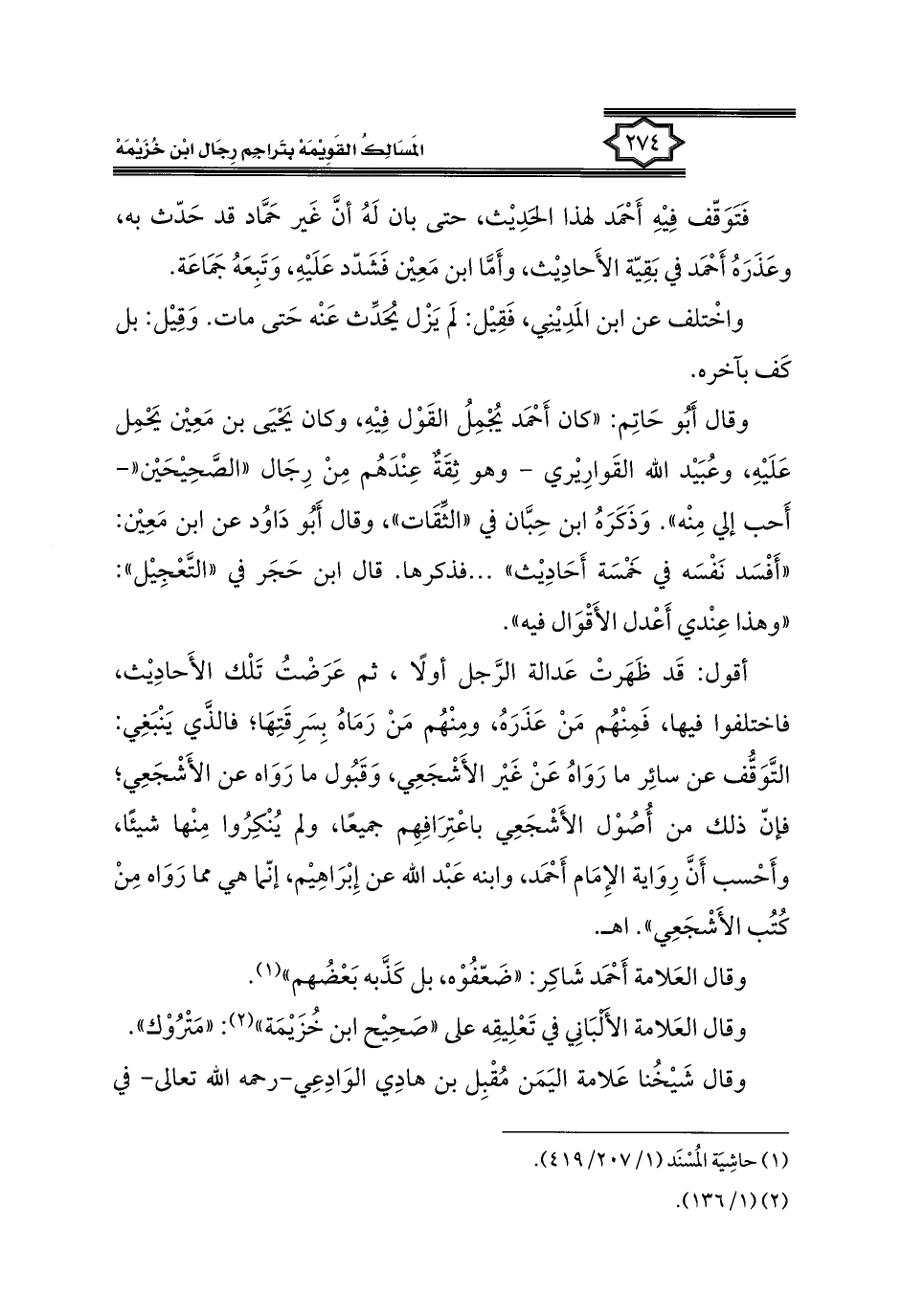 كتاب المسالك القويمة بتراجم رجال ابن خزيمة في الصحيح، والتوحيد، والفوائد (اسم الجزء: 1)