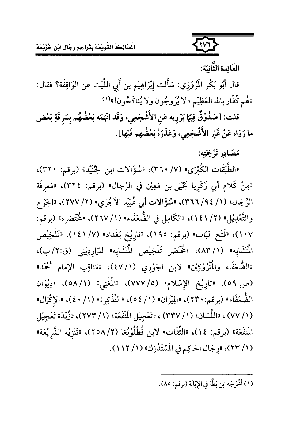 كتاب المسالك القويمة بتراجم رجال ابن خزيمة في الصحيح، والتوحيد، والفوائد (اسم الجزء: 1)