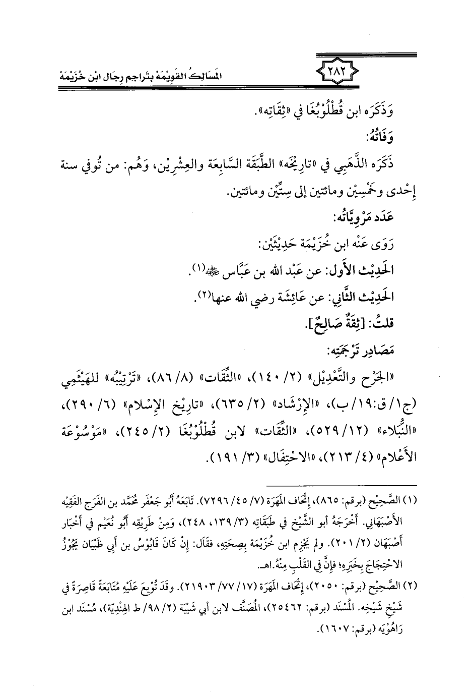 كتاب المسالك القويمة بتراجم رجال ابن خزيمة في الصحيح، والتوحيد، والفوائد (اسم الجزء: 1)