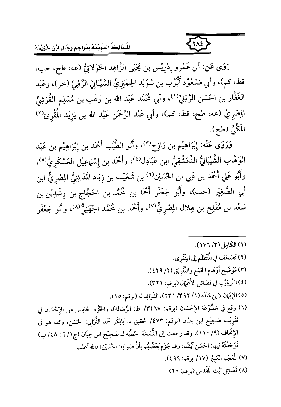 كتاب المسالك القويمة بتراجم رجال ابن خزيمة في الصحيح، والتوحيد، والفوائد (اسم الجزء: 1)