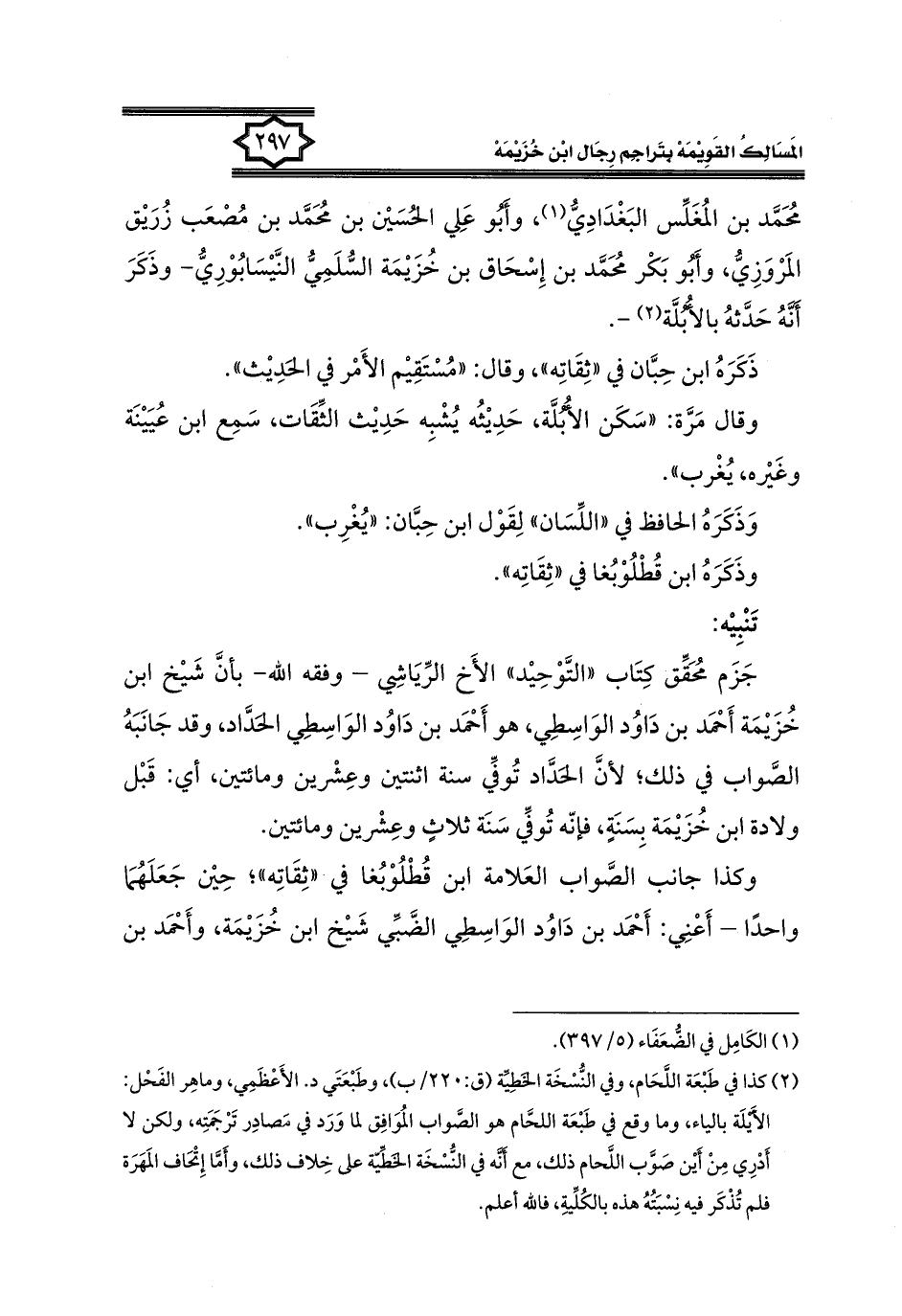 كتاب المسالك القويمة بتراجم رجال ابن خزيمة في الصحيح، والتوحيد، والفوائد (اسم الجزء: 1)