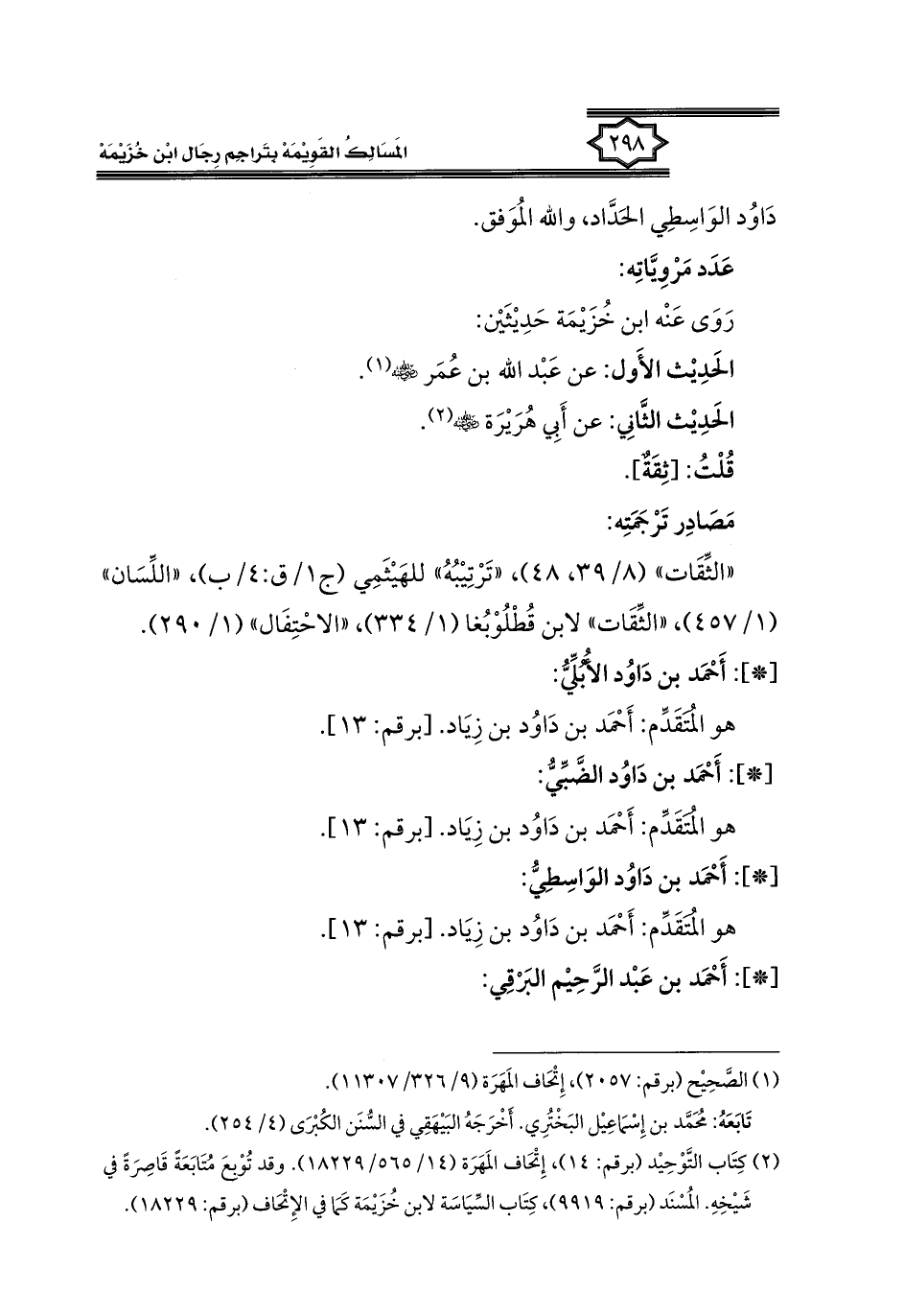 كتاب المسالك القويمة بتراجم رجال ابن خزيمة في الصحيح، والتوحيد، والفوائد (اسم الجزء: 1)