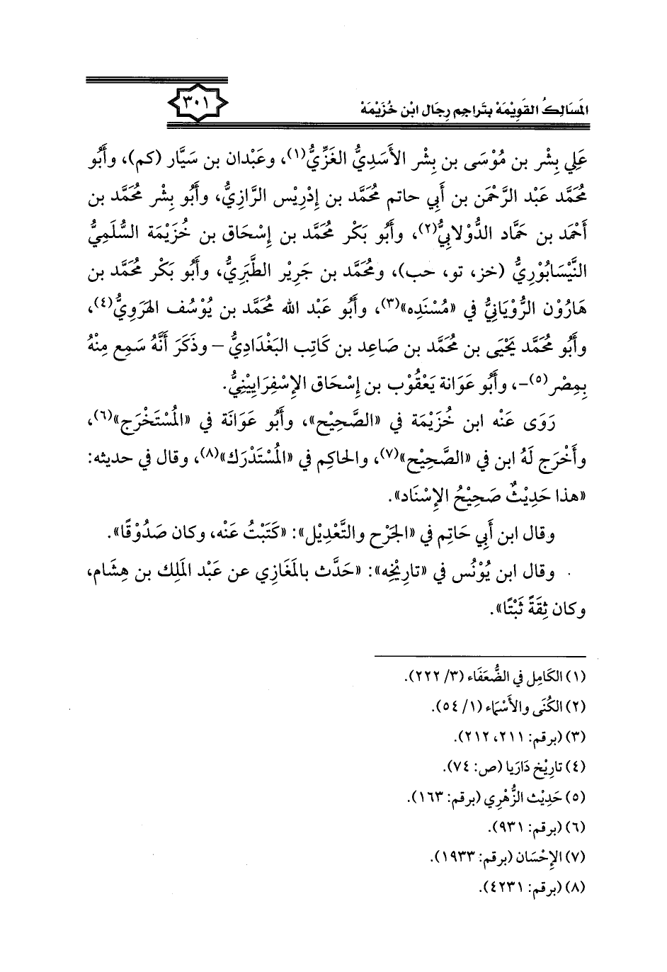 كتاب المسالك القويمة بتراجم رجال ابن خزيمة في الصحيح، والتوحيد، والفوائد (اسم الجزء: 1)