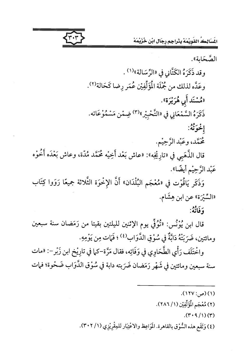 كتاب المسالك القويمة بتراجم رجال ابن خزيمة في الصحيح، والتوحيد، والفوائد (اسم الجزء: 1)
