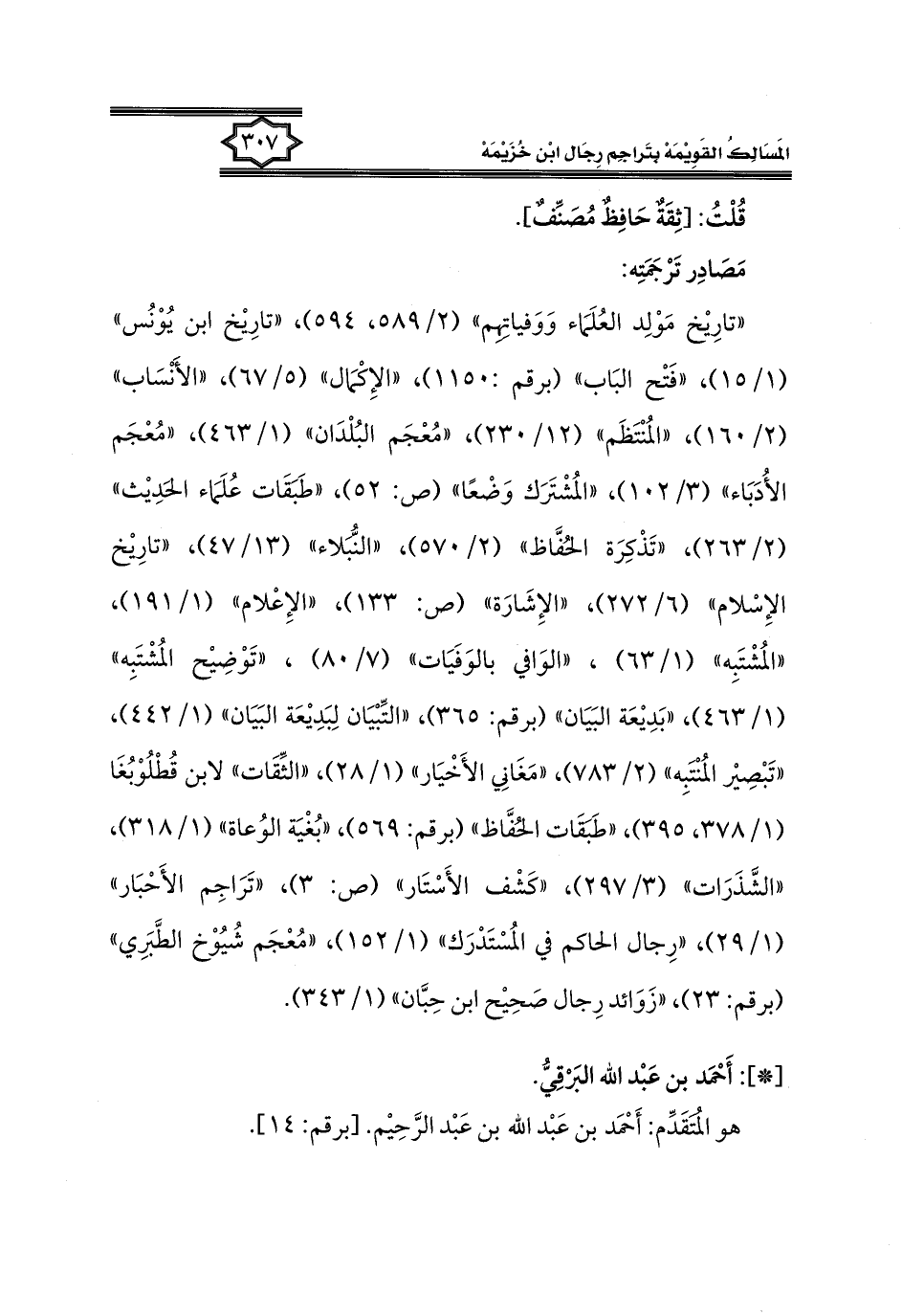 كتاب المسالك القويمة بتراجم رجال ابن خزيمة في الصحيح، والتوحيد، والفوائد (اسم الجزء: 1)