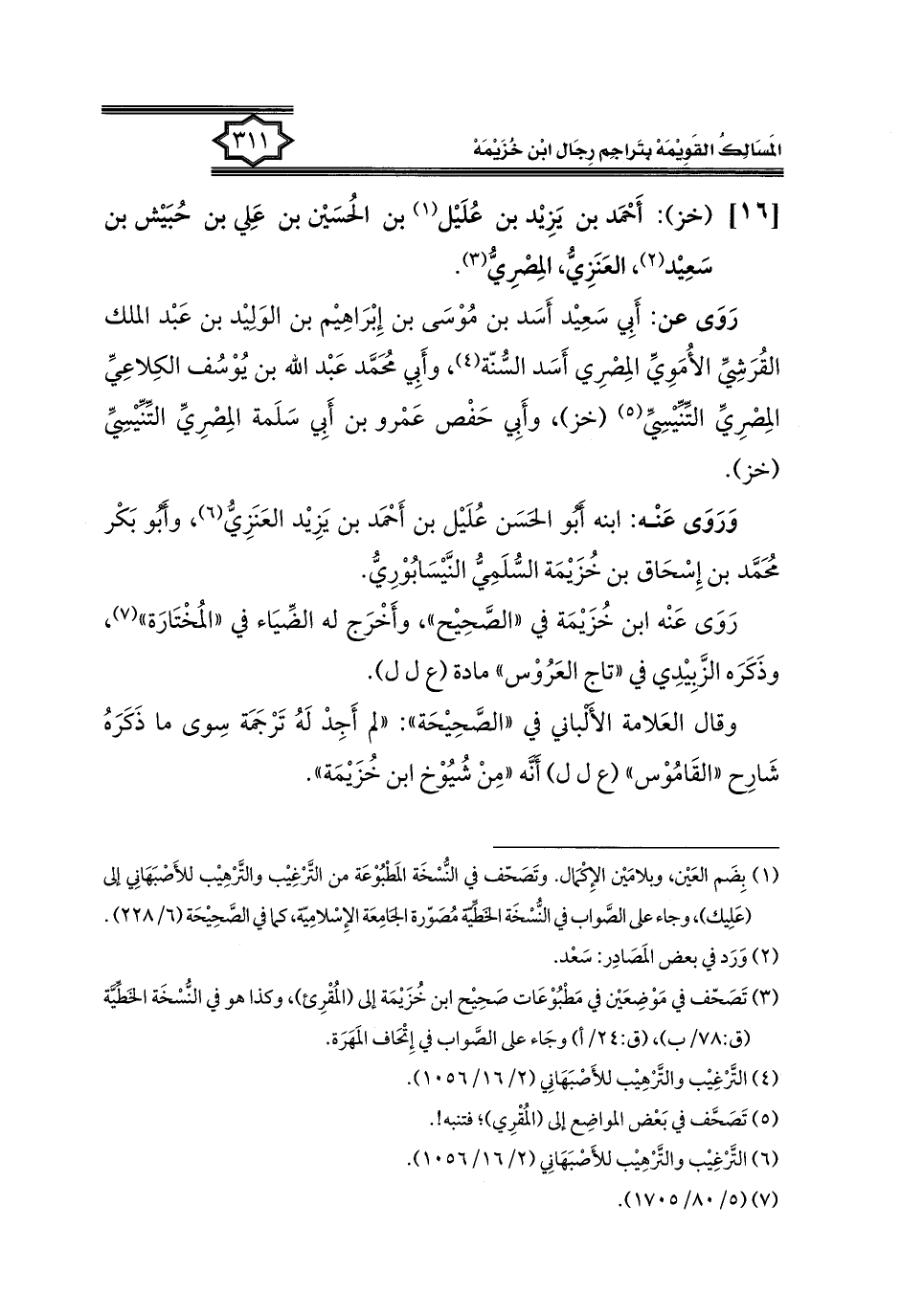 كتاب المسالك القويمة بتراجم رجال ابن خزيمة في الصحيح، والتوحيد، والفوائد (اسم الجزء: 1)