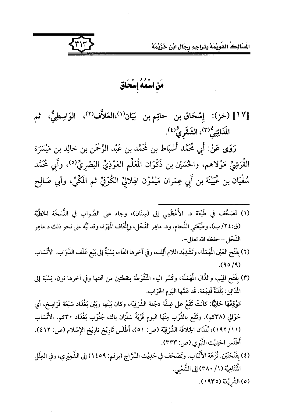 كتاب المسالك القويمة بتراجم رجال ابن خزيمة في الصحيح، والتوحيد، والفوائد (اسم الجزء: 1)