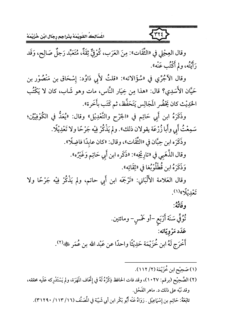 كتاب المسالك القويمة بتراجم رجال ابن خزيمة في الصحيح، والتوحيد، والفوائد (اسم الجزء: 1)