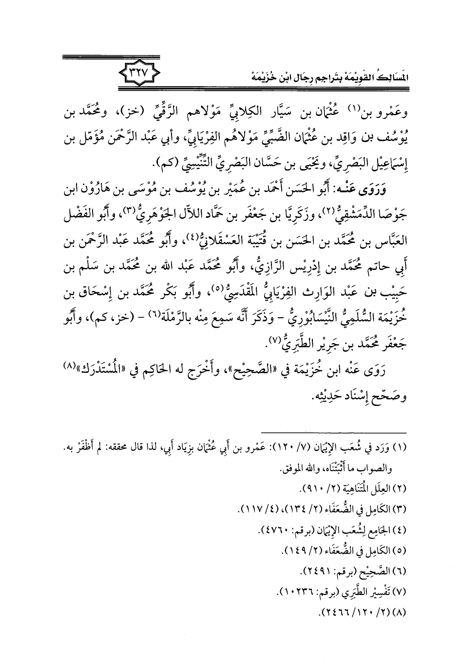 كتاب المسالك القويمة بتراجم رجال ابن خزيمة في الصحيح، والتوحيد، والفوائد (اسم الجزء: 1)