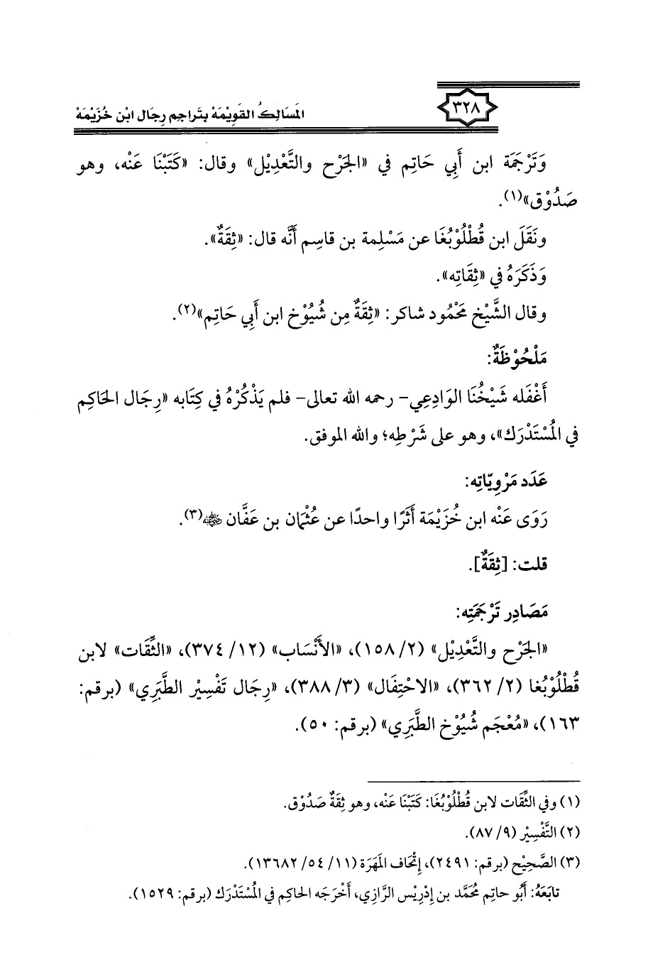 كتاب المسالك القويمة بتراجم رجال ابن خزيمة في الصحيح، والتوحيد، والفوائد (اسم الجزء: 1)