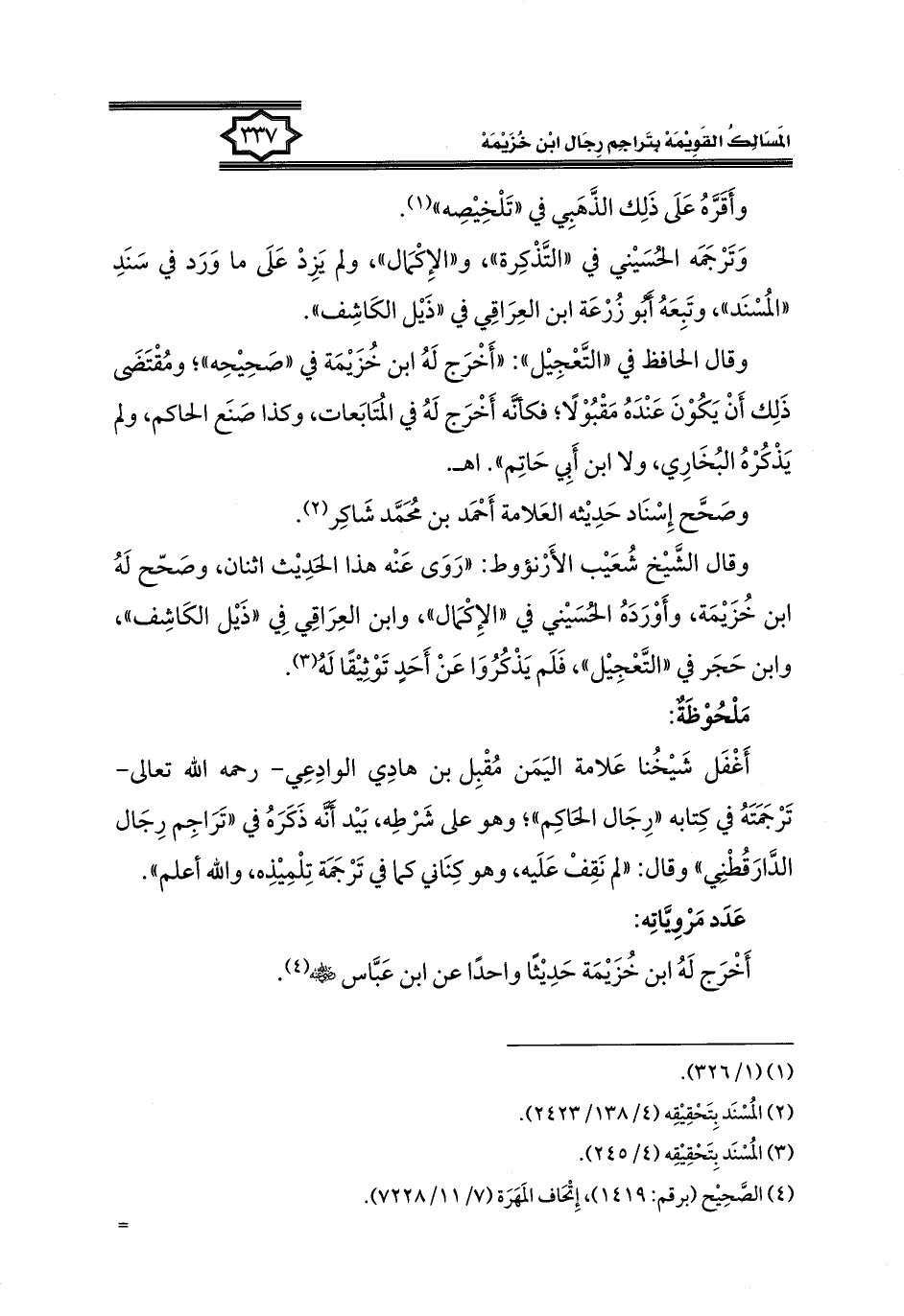 (٤) الصَّحِيح (برقم: ١٤١٩)، إِتْحَاف المَهَرَة (٧/ ١١/ ٧٢٢٨). =