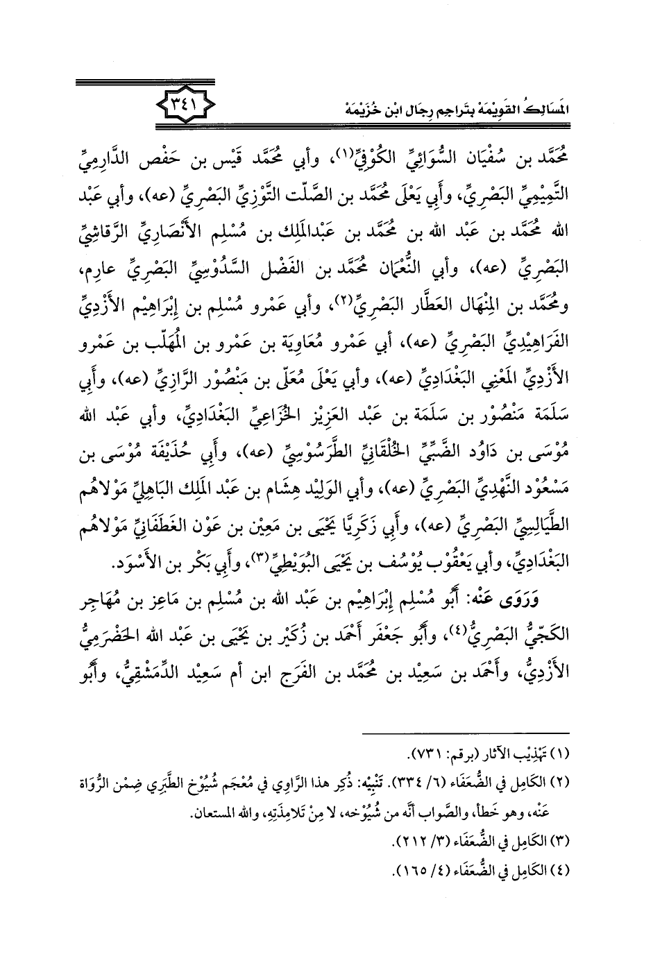 كتاب المسالك القويمة بتراجم رجال ابن خزيمة في الصحيح، والتوحيد، والفوائد (اسم الجزء: 1)