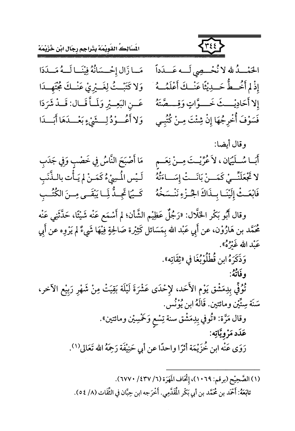 كتاب المسالك القويمة بتراجم رجال ابن خزيمة في الصحيح، والتوحيد، والفوائد (اسم الجزء: 1)