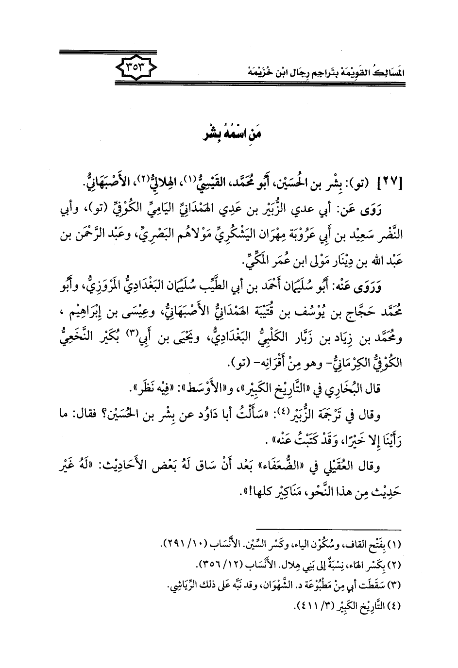 [٢٧] (تو): بِشْر بن الحُسَيْن، أبُو مُحَمَّد، القَيْسِيُّ (١)، الهِلالِيُّ (٢)، الأَصْبَهَانِيُّ.