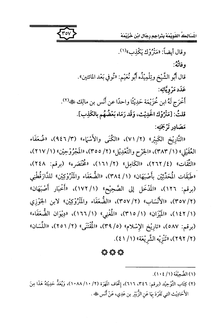 كتاب المسالك القويمة بتراجم رجال ابن خزيمة في الصحيح، والتوحيد، والفوائد (اسم الجزء: 1)