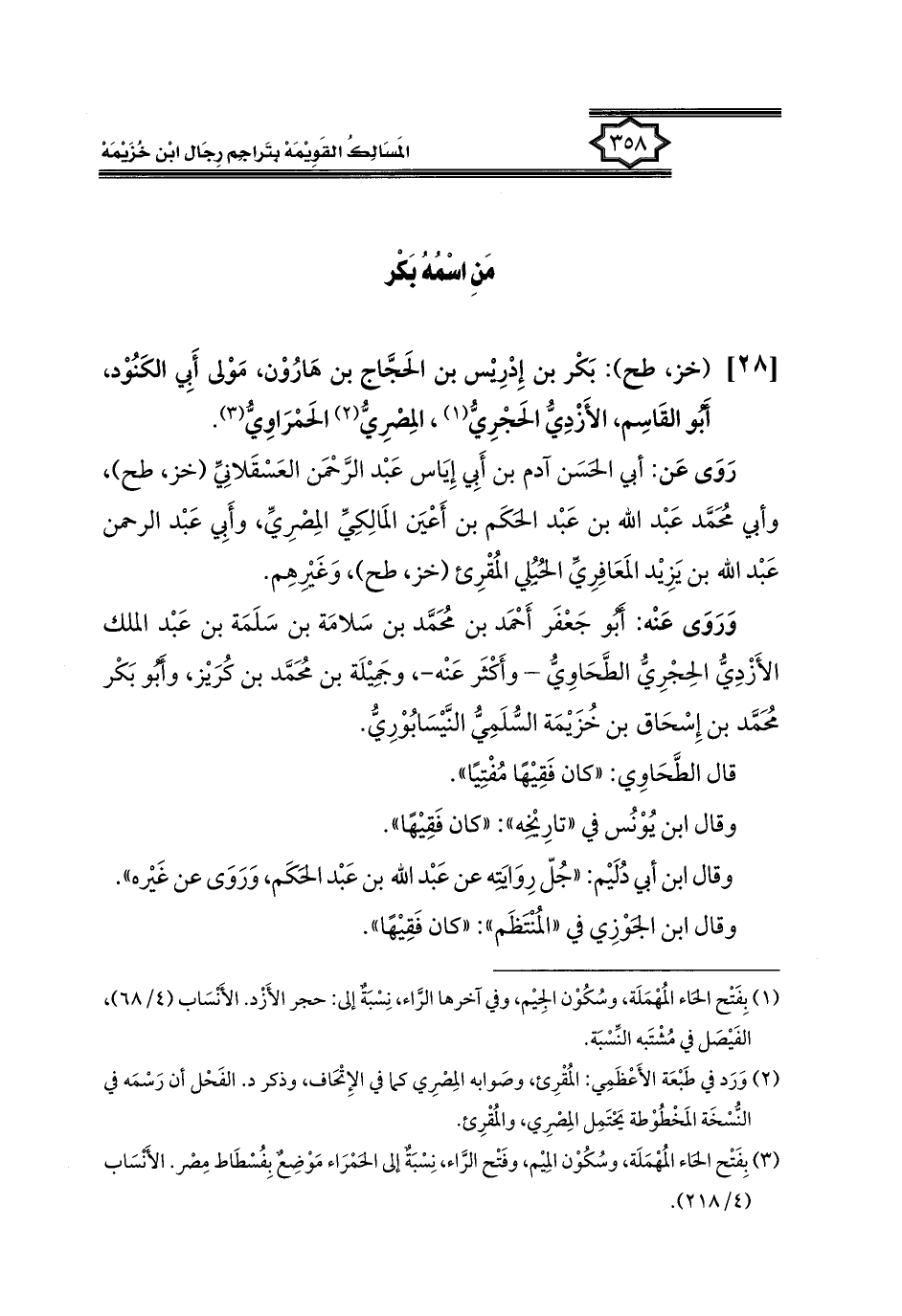 كتاب المسالك القويمة بتراجم رجال ابن خزيمة في الصحيح، والتوحيد، والفوائد (اسم الجزء: 1)