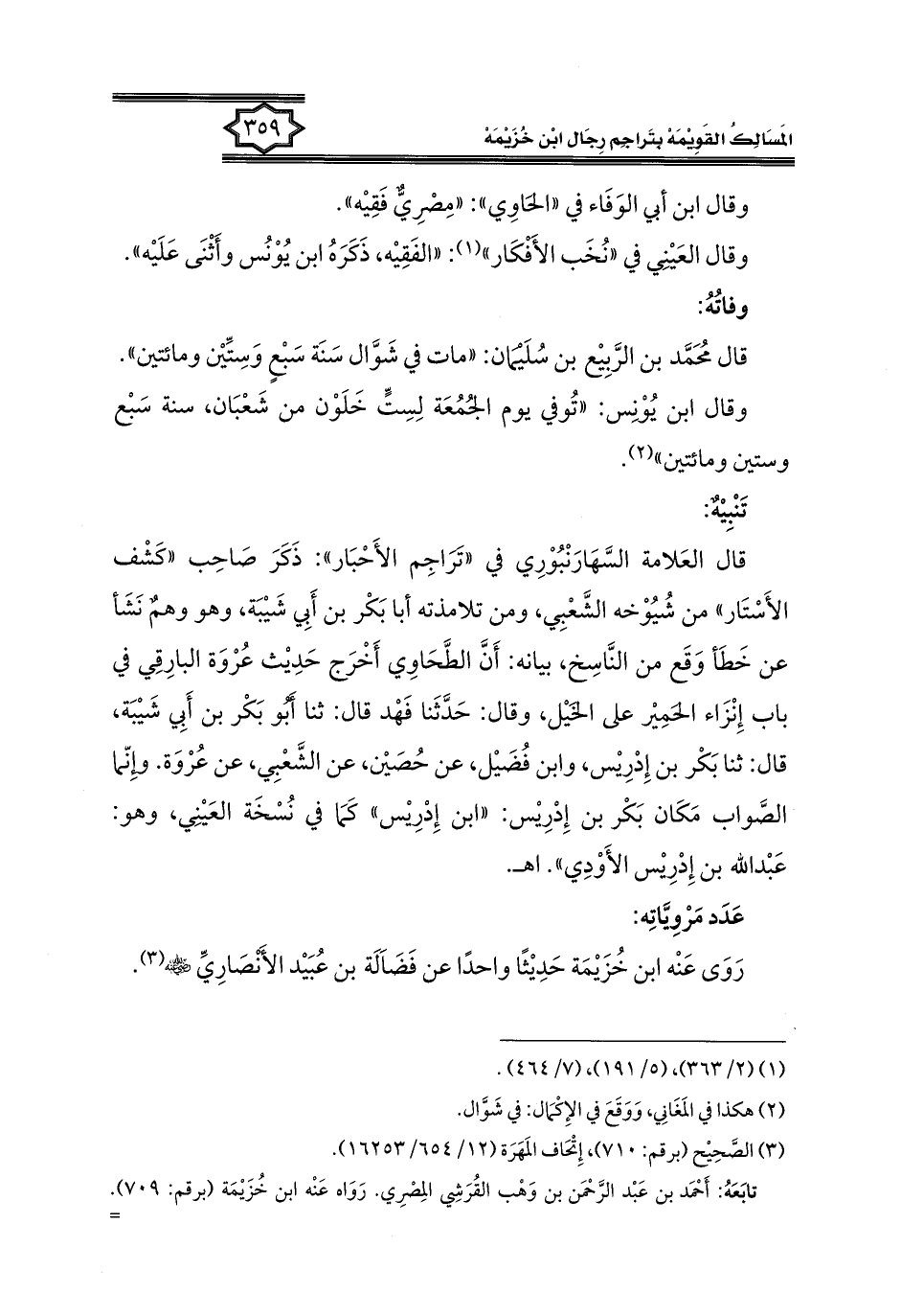 كتاب المسالك القويمة بتراجم رجال ابن خزيمة في الصحيح، والتوحيد، والفوائد (اسم الجزء: 1)