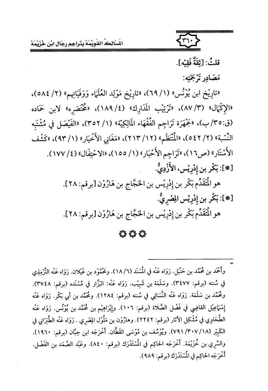كتاب المسالك القويمة بتراجم رجال ابن خزيمة في الصحيح، والتوحيد، والفوائد (اسم الجزء: 1)