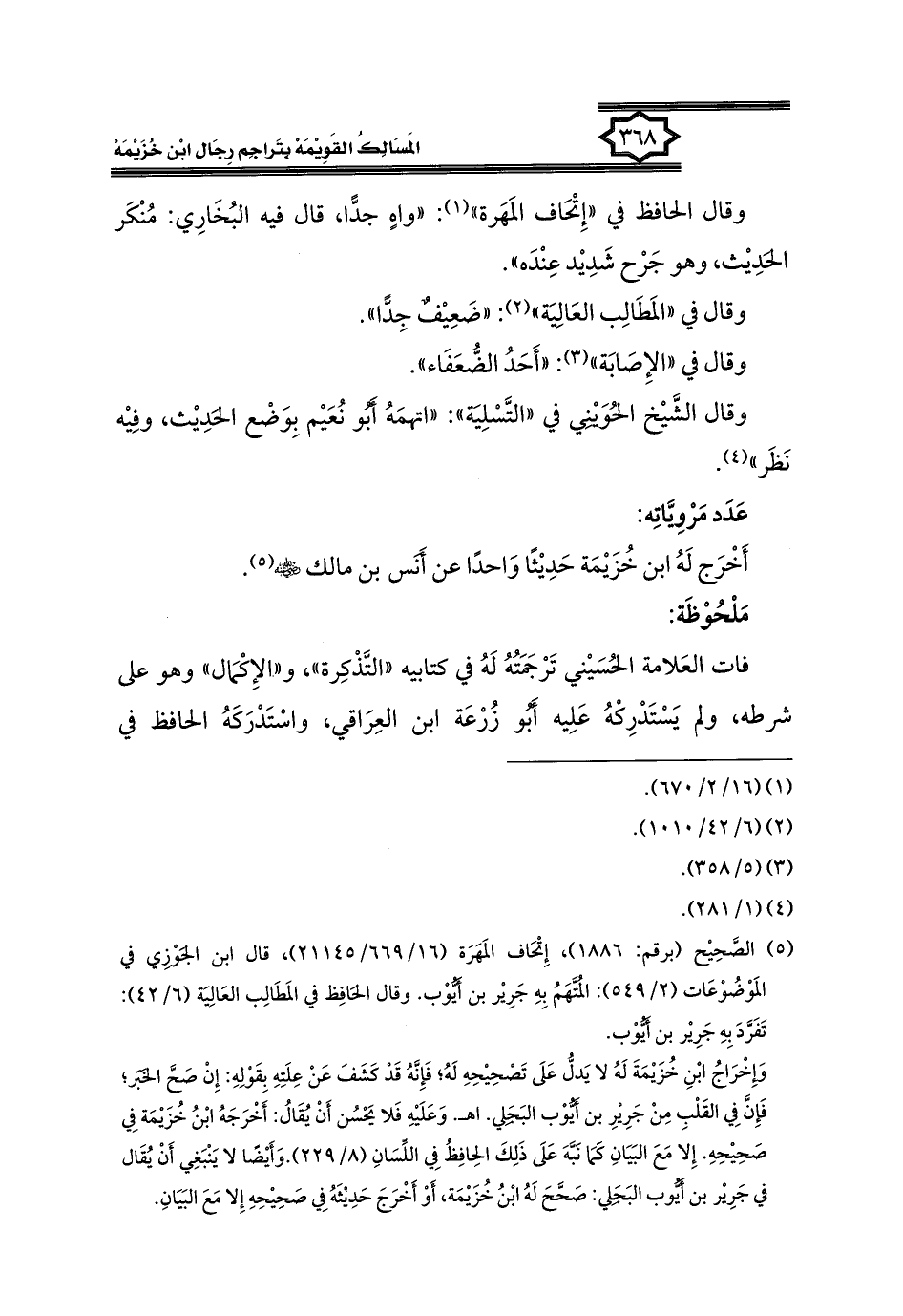 كتاب المسالك القويمة بتراجم رجال ابن خزيمة في الصحيح، والتوحيد، والفوائد (اسم الجزء: 1)