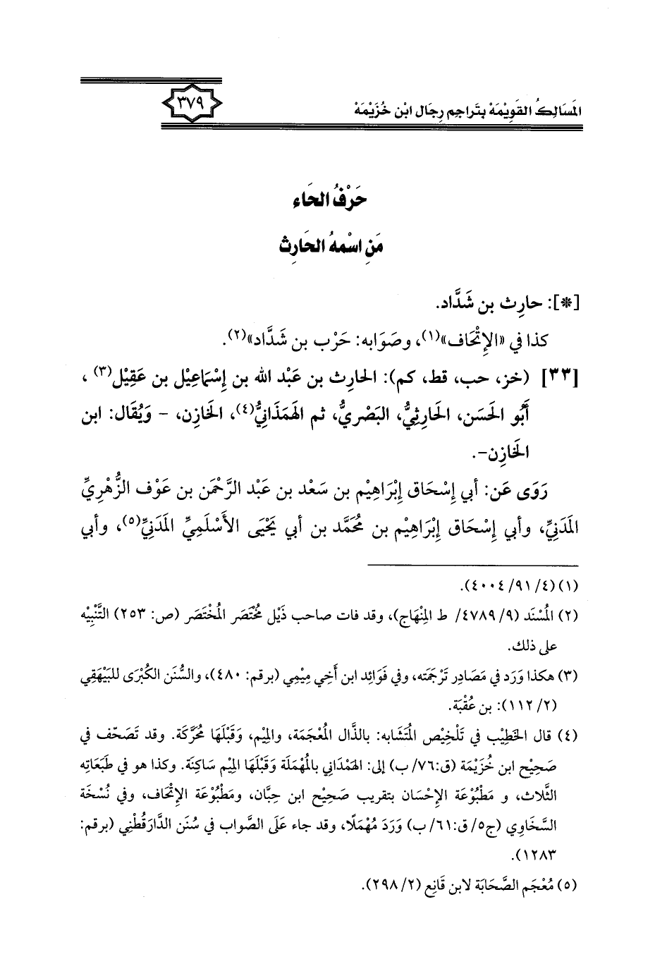 [٣٣] (خز، حب، قط، كم): الحارِث بن عَبْد الله بن إِسْمَاعِيل بن عَقِيل (٣)، أبُو الحَسَن، الحَارِثيُّ، البَصْريُّ، ثم الهَمَذَانِيُّ (٤)، الخَازِن، - وَيُقَال: ابن الخَازِن -.